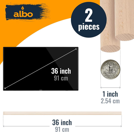 ALBO 1" x 36" Wooden Dowel Rods Set - 2 Pack Birch Natural Long Hardwood Craft Sticks Railings Supports Garden Structures Sanded Smooth Versatile Woodworking Furniture Decor DIY Projects