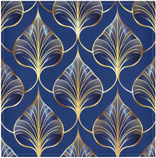 ALAZA Art Deco Floral Royal Blue & Gold Cloth Napkins Set of 1, 20x20 Inch Washable and Reusable Napkin for Decoupage Dinner Party Everyday Use