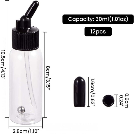10 Pack 30ML Airbrush Plastic Bottles Jars with caps for Dual- Action Siphon Suction Feed Airbrush