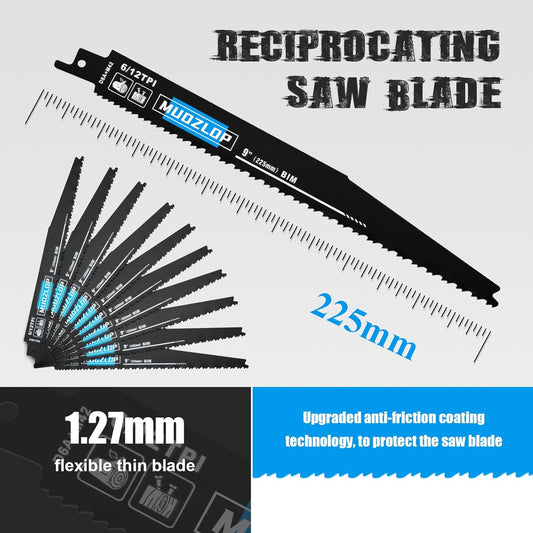 10 Pack 9 inch Reciprocating Saw Blades Set,6/12 TPI High Carbon Saw Blades, Woodcutting Saw Blades with Organizer Case (10, 6/12TPI/225mm)