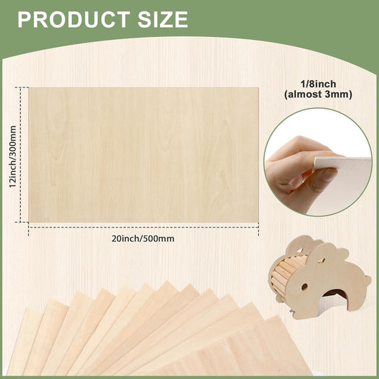 10 Pack Basswood Sheets 1/8x12x20 Inch, Unfinished Wood for Crafts, 3mm Basswood for Laser Cutting & Engraving, Wood Burining,Architectural Models, Plywood for Painting.