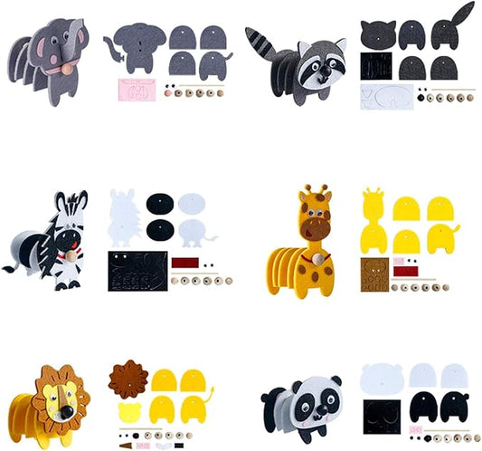 Animals Craft Kit - Educational Toys for Kids, Felt Craft Kit Including 6 Wild Friends, Elephant Zebra Panda Lion Raccoon Giraffe, DIY Activity Birthday Gifts for Boys & Girls Ages 3 4 5 6 and Up