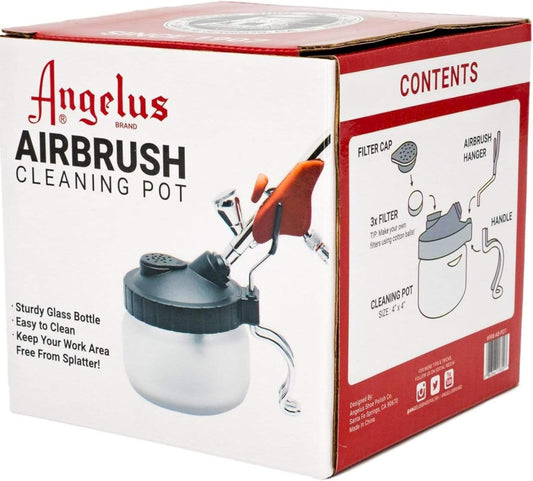 ANGELUS Airbrush Cleaning Pot, Glass Cleaning Pot with Holder, Cleans Airbrush, Airbrush Holder Station