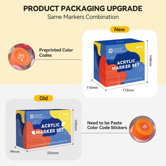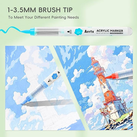 Arrtx 48 Colors Acrylic Marker, for Rock Painting, Extra Brush Tip Markers Paint Pens, Art Supplies, Fabric Paint, Art Markers, Waterproof Paint DIY Crafts Making& 48E
