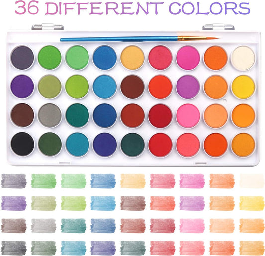 AROIC Watercolor Paint Set, 36-Color Watercolor Paint with 10 Brushes, Non-Toxic Washable Watercolors for Kids & Adults, Art Supplies for Painting, Drawing, DIY Crafts, School, Classroom, Artist Use