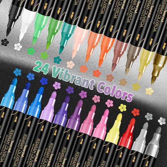 Art+soul 24 Colors Acrylic Paint Pens-Dual Tip Markers, Vibrant, Long Lasting Colors that Dry Quickly, Ideal for Canvas, Paper, Glass, Ceramic, Wood, and Rock