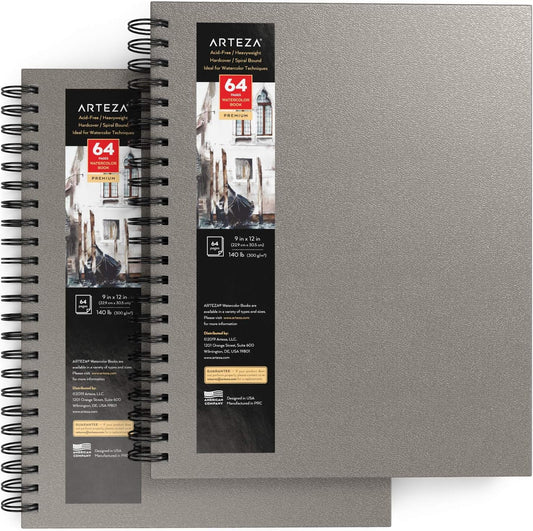 ARTEZA Watercolor Paper, Pack of 2, 32 Sheets Each, 9x12 Inch Watercolor Sketchbook, 140lb/300gsm, Cold Press, Acid Free Art Paper