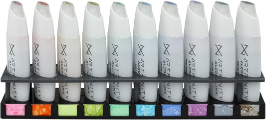 Artfinity Alcohol Ink Pretty in Pastel Set of 10 Colors (25 ml) with Free Acrylic Stand - for Painting or Alcohol Marker Refill Ink, Acid-Free, Fast-Drying, Permanent, Transparent, Swatch Template