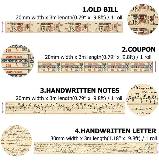 10 Rolls (Totally 98ft/30m) Vintage Washi Tape Set, Masking Tape Nostalgic Style Decor Sticker for DIY Craft Scrapbooking Bullet Journal Planner Gift Wrapping