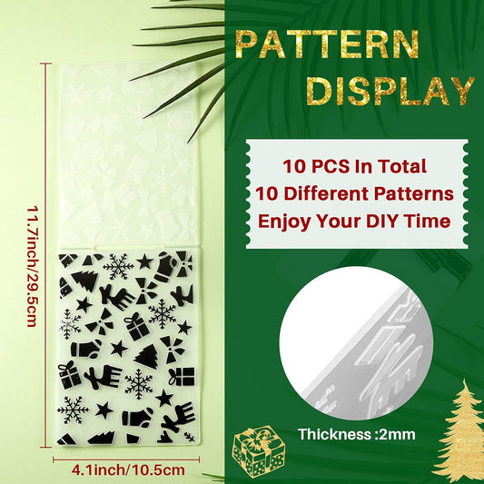 10 Pieces Christmas Embossing Folders Snowflake Deer Leaves Stencil Template DIY Craft Background Embossing Folders for Card Making Photo Album Scrapbooking Decoration
