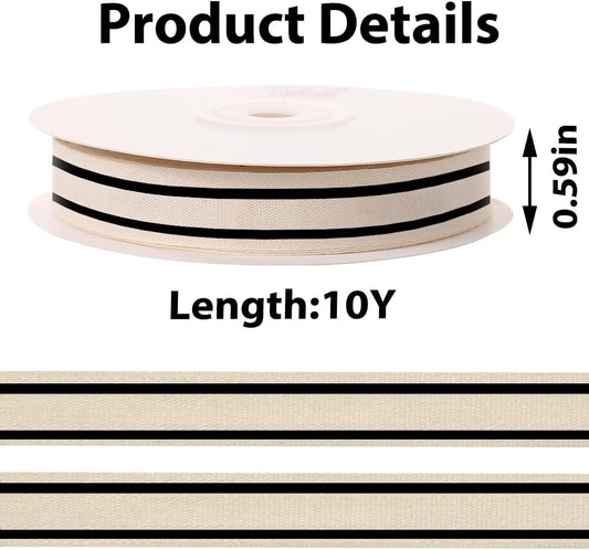 10 Yards × 3/5 Inch Black Natural Cotton Ribbon, Double Sided Webbing Straps Ribbons, Birthday Wedding Valentines Ribbons for Crafting, DIY Sewing, Gift Wrapping