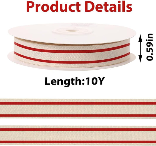 10 Yards × 3/5 Inch Red Natural Cotton Ribbon, Double Sided Webbing Straps Ribbons, Birthday Wedding Valentines Ribbons for Crafting, DIY Sewing, Gift Wrapping