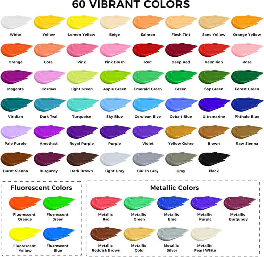 ARTME Acrylic Paint Set, 60 Colors in 2oz/60ml Bottles, Non Toxic, Waterproof, Rich Pigments Acrylic Paint for Artists, Students, Beginners Painting on Rocks Canvas Wood Clay Fabric Ceramic Crafts