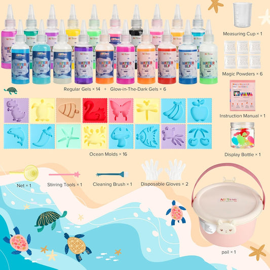 ARTPAR Water Elf Magic Gel Kit - 20 Colorful Gels + 16 Fantasy Molds - Non-Toxic Sensory Toys for Kids - Creative Arts & Crafts Project - Birthday Gifts for 5 6 7 8 9 10 Year Old Girls Boys