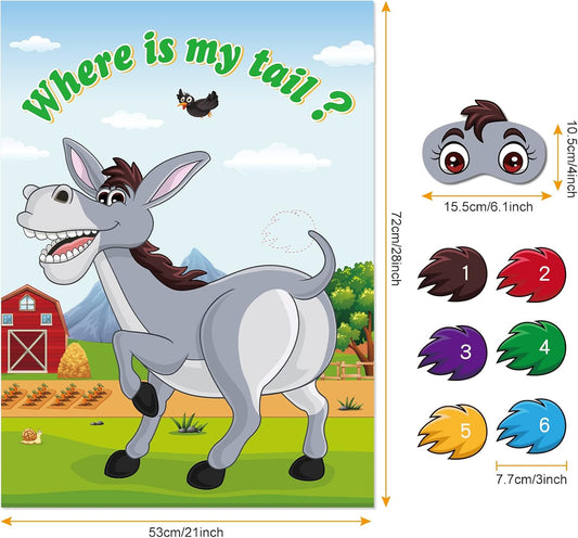 ASTARON Pin The Tail on The Donkey Game with 30 Tail Stickers for Birthday Party Carnival Circus Supplies