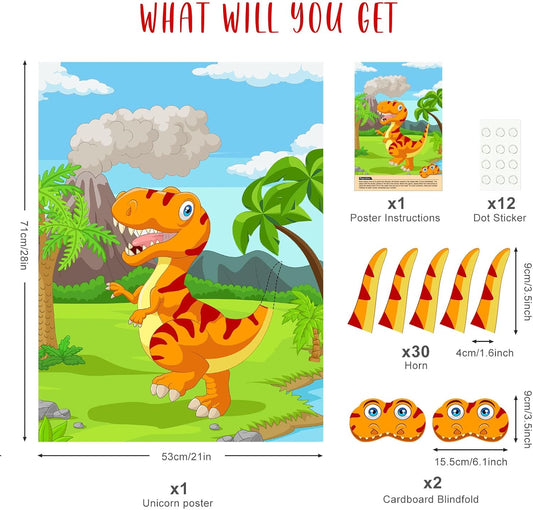 ASTARON Pin The Tail on The Dinosaur Party Game with 30 Tail Stickers for Dinosaur Birthday Party Supplies Pin Game, Boys Party Dinosaur Favors Decorations for Christmas