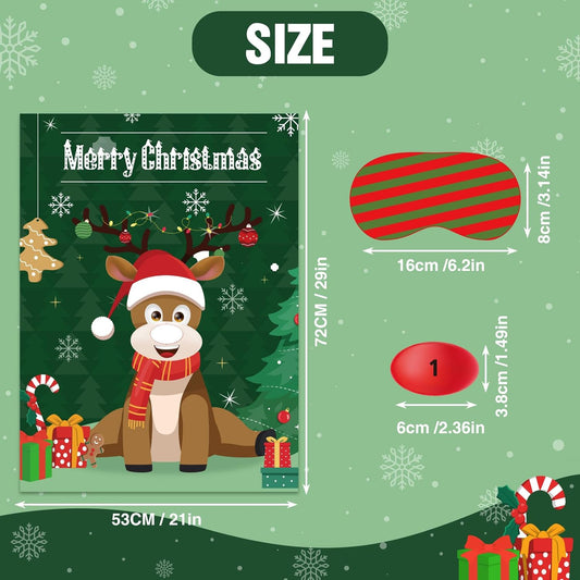ASTARON Christmas Party Games for Kids, Pin The Hat on Reindeer with 36 Stickers 2 Blindfolds Christmas Holiday Party Decorations School Classroom Activities