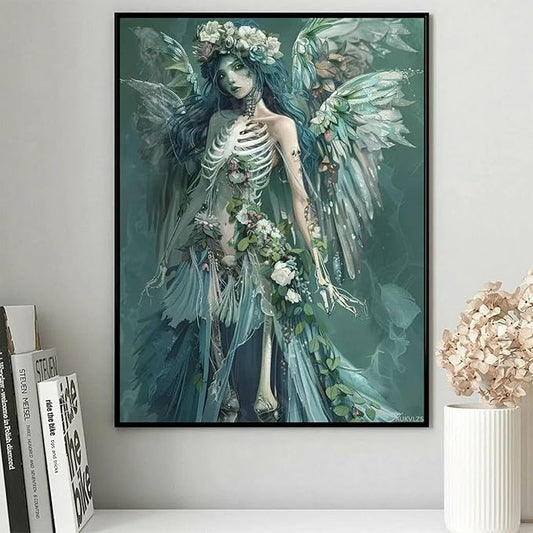 AUKVLZS Diamond Painting DIY Fun Wall Art Decor, Great Gift for Craft Lovers (12x16 inch Warm Bedroom Decor Living Room Decoration) Japanese Skeleton Woman Diamond Painting Kits