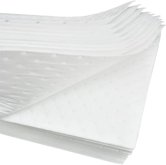 Autocare Heavyweight Oil Absorbing Pads | White Absorbing Heavy Weight Oil-Only Absorbent Mat Pad | 15" x 20" | 50 Oil Absorbent Pads |