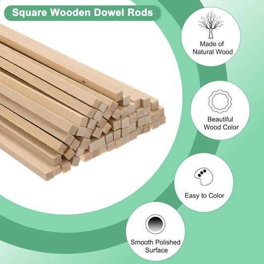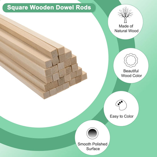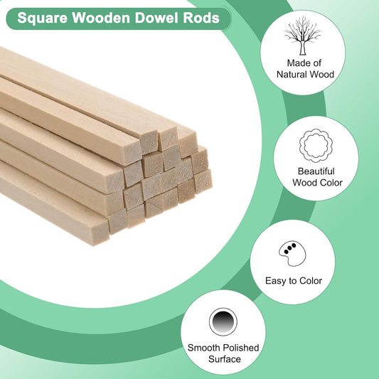 10-Pack Wood Square Dowel Rods, 19/32 x 12 Inch Unfinished Wooden Square Dowel Rod, Hardwood Square Dowel Sticks for Crafts/DIY Projects/Models Making [Wood Color]