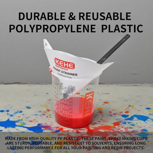 100 Pack Paint Mixing Cups by KEHE REFINISH,18 oz (550ml),Disposable or Reusable Plastic Measuring Cups with Lids for Liquids, Paints, Resin, Epoxy, Art,Ratios 1:1,2:1, 3:1, 4:1,5:1,6:1,7:1,8:1