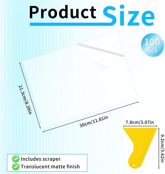 100 Pack Matte Self Adhesive Laminating Sheets, Clear Laminating Sheets Holographic Sticker Paper Clear Vinyl, Matte Finish Self Sealing Lamination Sheet, with Scraper, 8.38" x 11.8"