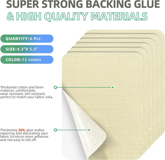 Azobur Coarse Linen Repair Patches, 6 Piece Self-Adhesive Linen Fabric Patches, Multi Color, Can be Used for Linen Sofa Repair and Linen Clothes Repair, Quick Fix Sofa.(Cream-Yellow)