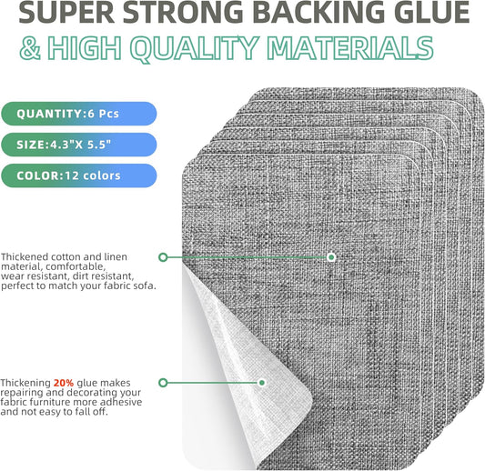 Azobur Coarse Linen Repair Patches, 6 Piece Self-Adhesive Linen Fabric Patches, Multi Color, Can be Used for Linen Sofa Repair and Linen Clothes Repair, Quick Fix Sofa.(Dark Gray)