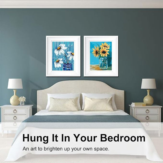 BAISITE Paint by Numbers Kit for Adults Beginners,12" Wx16 L 2 Pack Canvas for Painting Kits for Adults in Colorful Box-Daisy and Sunflowers 0304