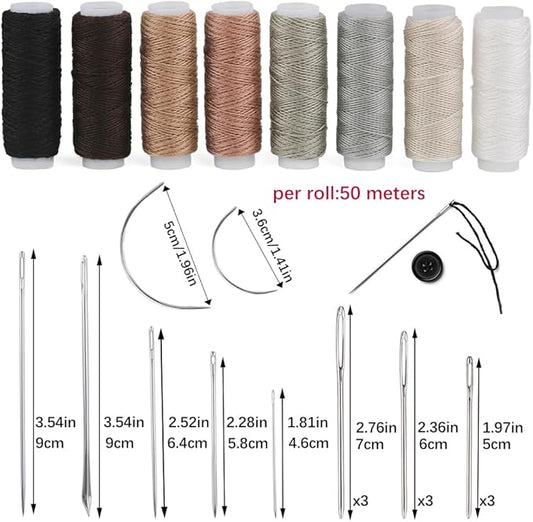 BAGERLA Upholstery Repair Kit, 50 Pcs Heavy Duty Sewing Kit with 8 Colors Thread 32 Pcs Upholstery Needles, Sewing Awls for Hand Stitching Car Sofa Shoe Backpack Craft DIY