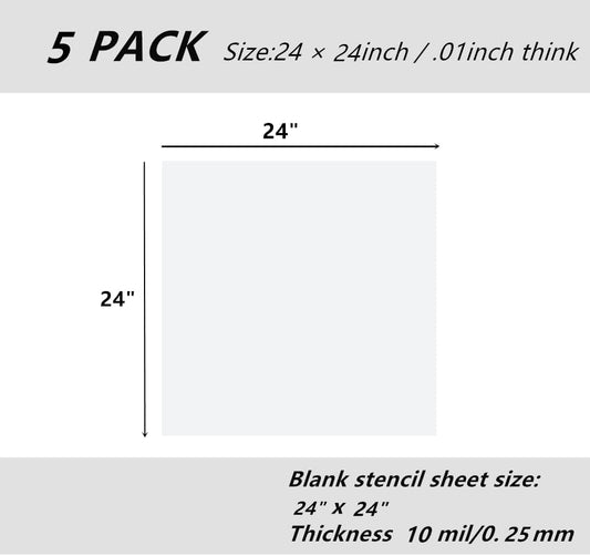 BANLTRE 5 Pack 24" x 24" 10mil/0.25mm Thick Clear Blank Stencil Sheet for Cutting,Craft Plastic Sheets (24" x 24" / 10mil)