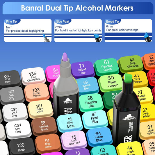 Banral 120 Colors Alcohol Markers, Premium Dual Tip Alcohol Based Art Markers Set for Adult Kids Coloring Drawing Sketching Permanent Brush Markers, Sketch Artists Markers Pens with Carry Case