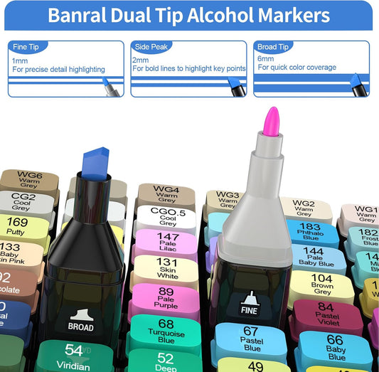 Banral 130 Colors Alcohol Markers Set, Dual Tip Alcohol Based Art Marker for Artists Kids Adult Coloring, Permanent Illustration Sketch Pens for Drawing