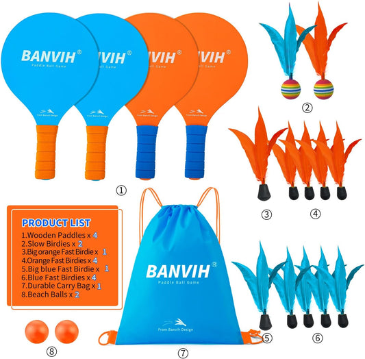 Banvih Badminton Set 4 Rackets, Paddle Ball Outdoor Games Christmas Stocking Stuffers for Kids Teens Adults and Family, Sports Beach Toys - for Yard, Lawn, Camping Games Essentials