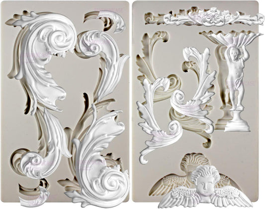 Baroque Style Ornament Curlicues Silicone Molds 3-Count Cherub Birdbath Scrollworks Art Deco Inspired Lace