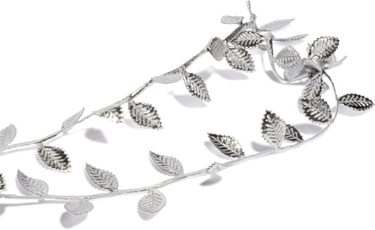 BASOKAN Silver Leaves Leaf Ribbon Trim Rope - 20 Yards - for Garland DIY Crafts and Party Wedding Home Decorations