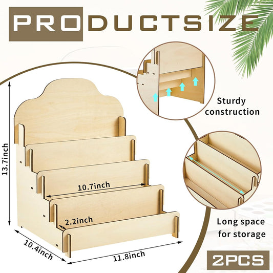Barydat 2 Pcs 4 Tier Greeting Card Display Stand Wooden Sticker Display Stand Portable Card Display Rack for Vendors Retail Counter Table Display Trade Shows Showcase (Wood Color,11.8 Inch)