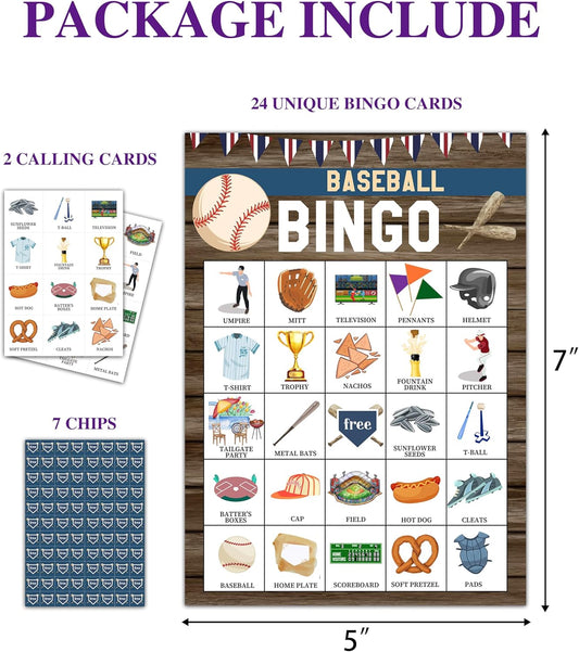 Baseball Bingo Game, Baseball Party Games Cards for Adults, Sports Party Games, Birthday Bingo, 24 Players (B06)