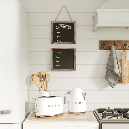 Barnyard Designs Magnetic Hanging Chalkboard Sign – Rustic Decorative Display Presentation Board for Office, School Supplies, Kitchen, Restaurant, Weddings and More, 11” x 10” (2 Pack)