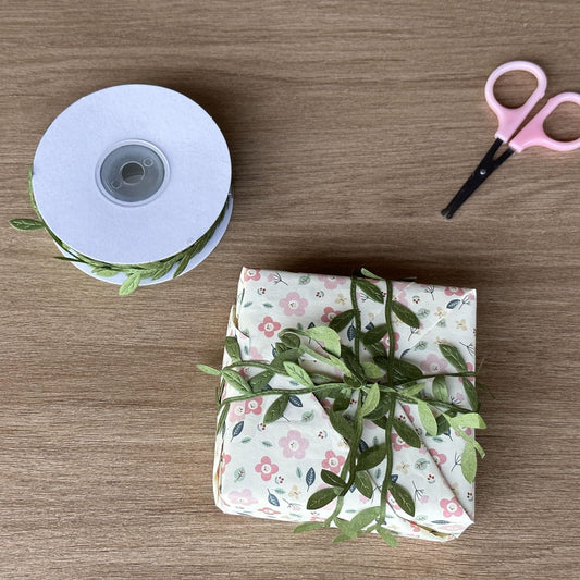 BASOKAN 100 Yards - Olive Green Leaves Leaf Ribbon Trim Rope for Garland DIY Crafts and Party Wedding Home Decorations