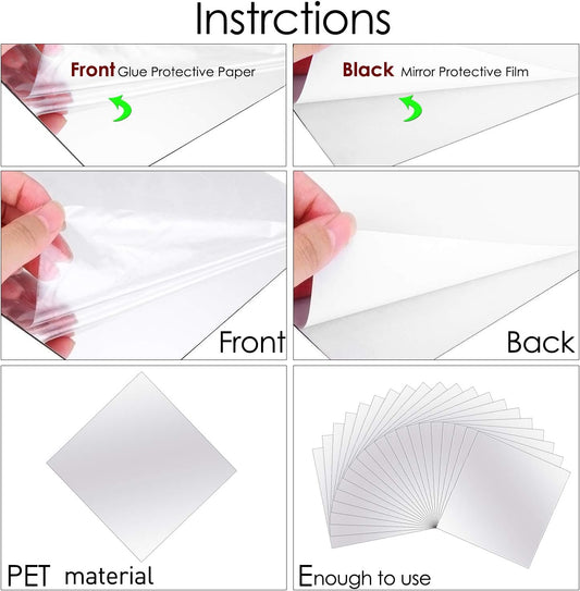 BBTO 20 Pcs Mirror Sheets, 8''x 8'' Self Adhesive Non Glass Cut to Size Mirror Stickers Tiles, Safe Unbreakable Plastic Small Frameless for Classroom, Childroom & DIY Craft