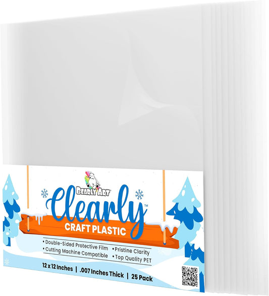 Bearly Art Clearly Craft Plastic - Crystal Clear Acetate Sheets for Crafts 12x12 - .007" - BPA Free - Compatible with Cricut and More - 25 Pack