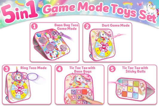 Bean Bag Toss Game for Kids - 5IN1 Kid Cornhole Toys Set, Over 3 Years Toddlers Children Backyard Beach Lawn Outdoor Indoor Throwing Toy to Boys Girls Birthday Family Party Christmas Easter Gift