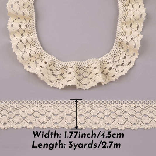 Beige Ruffle Lace Trim 1.77''x3yds Gathered Elastic Lace Ribbon for Sewing Crafts, Apparel Home Decor