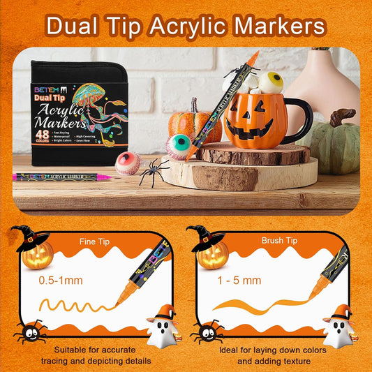 Betem Paint Markers Acrylic Paint Pens, Dual Tip 48 Colors Acrylic Markers with Brush Tip and Fine Point, Art Supplies for Wood, Canvas, Stone, Glass, Rock Painting Kit DIY Crafts Drawing Kit with Bag