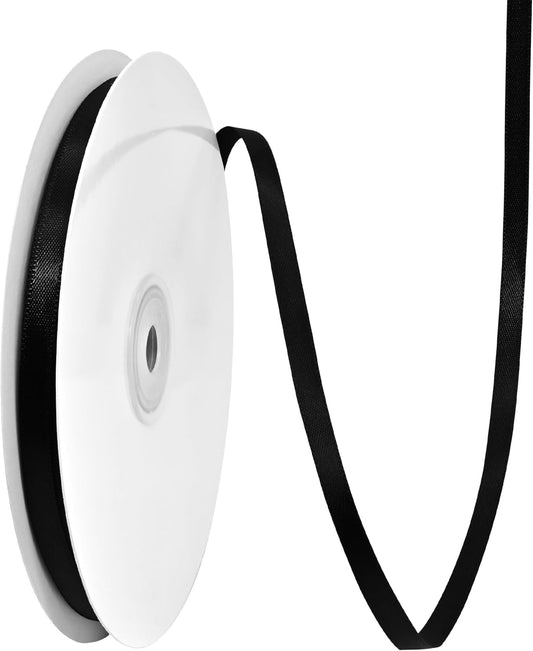 Black Satin Ribbon 1/4" X 50 Yards Solid Color Double Faced Ribbons Perfect for Crafts Wedding Decor Bow Making Arts Sewing and More