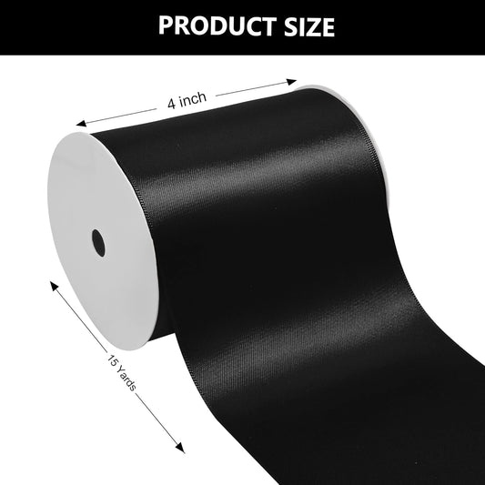 Black Satin Ribbon 4 Inch X 15 Yards Solid Color Double Faced Ribbons Perfect for Crafts Wedding Decor Bow Making Arts Sewing and More