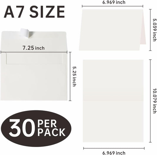 Blank Cards and Envelopes 5x7, 30 Pack Cream White Invitation Folded Cardstock with 30 Matching Self-Seal Cream A7 Envelopes, Thank You Blank Greeting Cards, for DIY, Print Custom, Wedding & Birthday