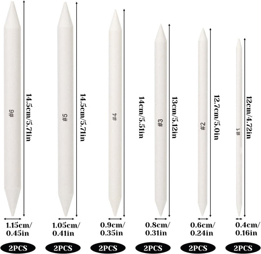 Blending Stump, 12 PCS Tortillions Blending Pencil Oil Pastel Blending Tools Shading Pencils Soft Paper Felts Sketch Blending Sticks for Artist Student Sketch Drawing Supplies (6 Sizes)