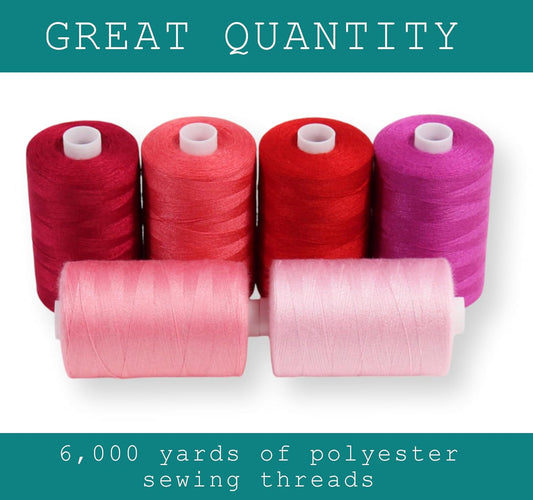 BlesSew Sewing Thread in Red Color Tones – 6 Spools of Polyester Thread for Sewing Machine for Beginners, Hand Stitching & Quilting - 1000 yds per Spool